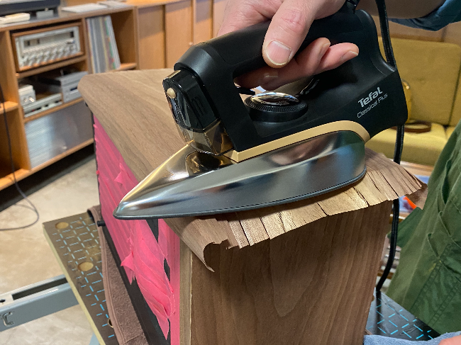 미리 적셔놓은 무늬목을