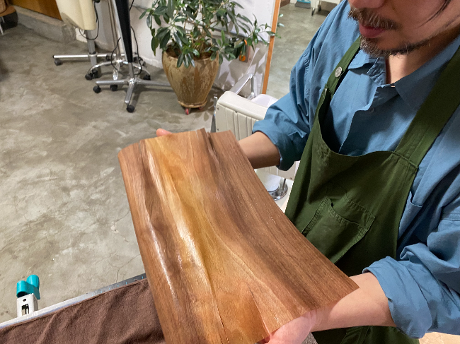 무늬목 작업 전 (오른쪽) 무늬목 작업 후 (왼쪽)